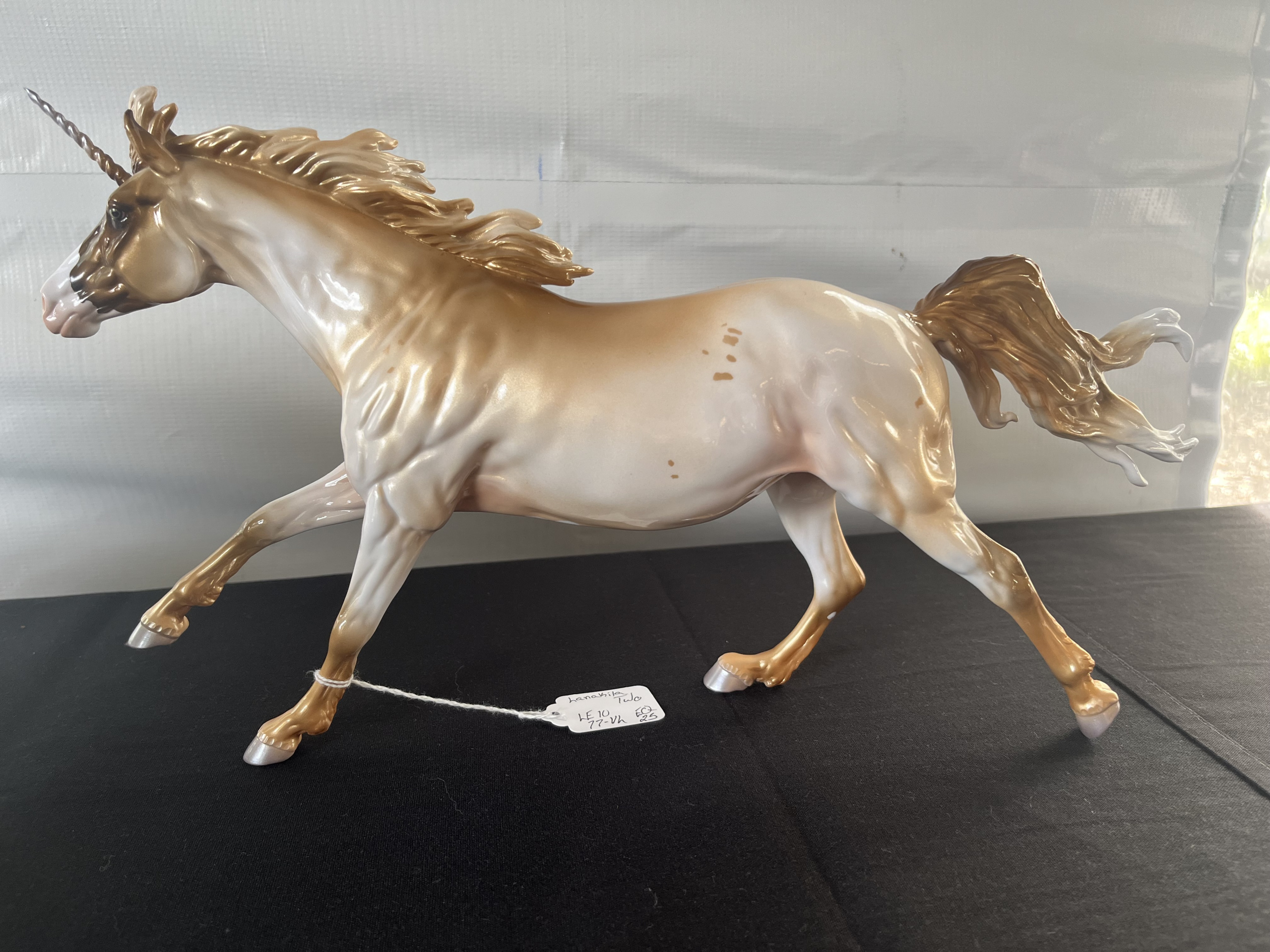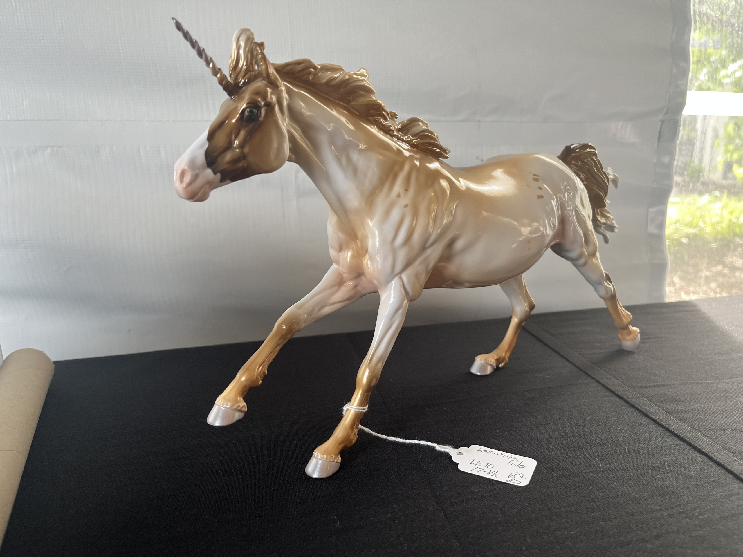 Kaleidoscope is a run of 6,500 and was made in 2021 for Breyerfest Horse of a Different Color. He is in very good condition and may have a few factory flaws. He has only been displayed on a shelf and comes from a smoke free home. The tumbler is from Breyerfest 2015 and is made of BPA free plastic. It has clear double walls with a paper Breyer design of a horse and the Eiffel Tower. Comes brand new with packaged straw and two tight fitting lids (one with a hole for the straw and the other simply...
