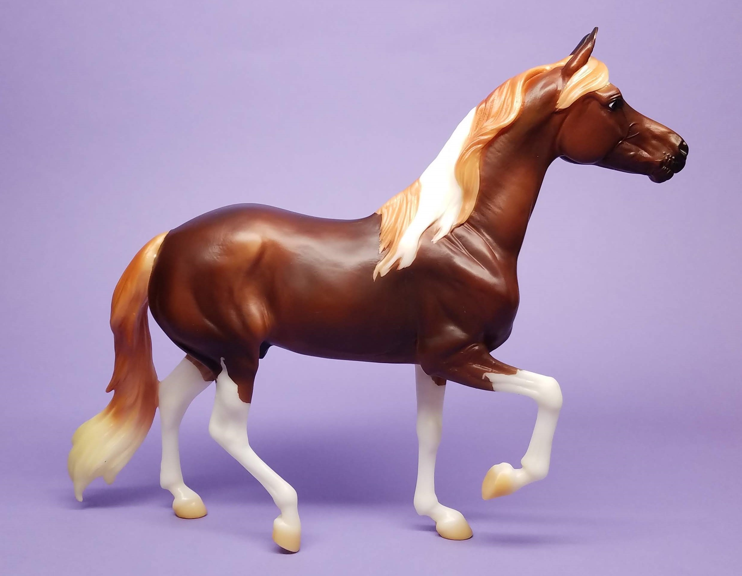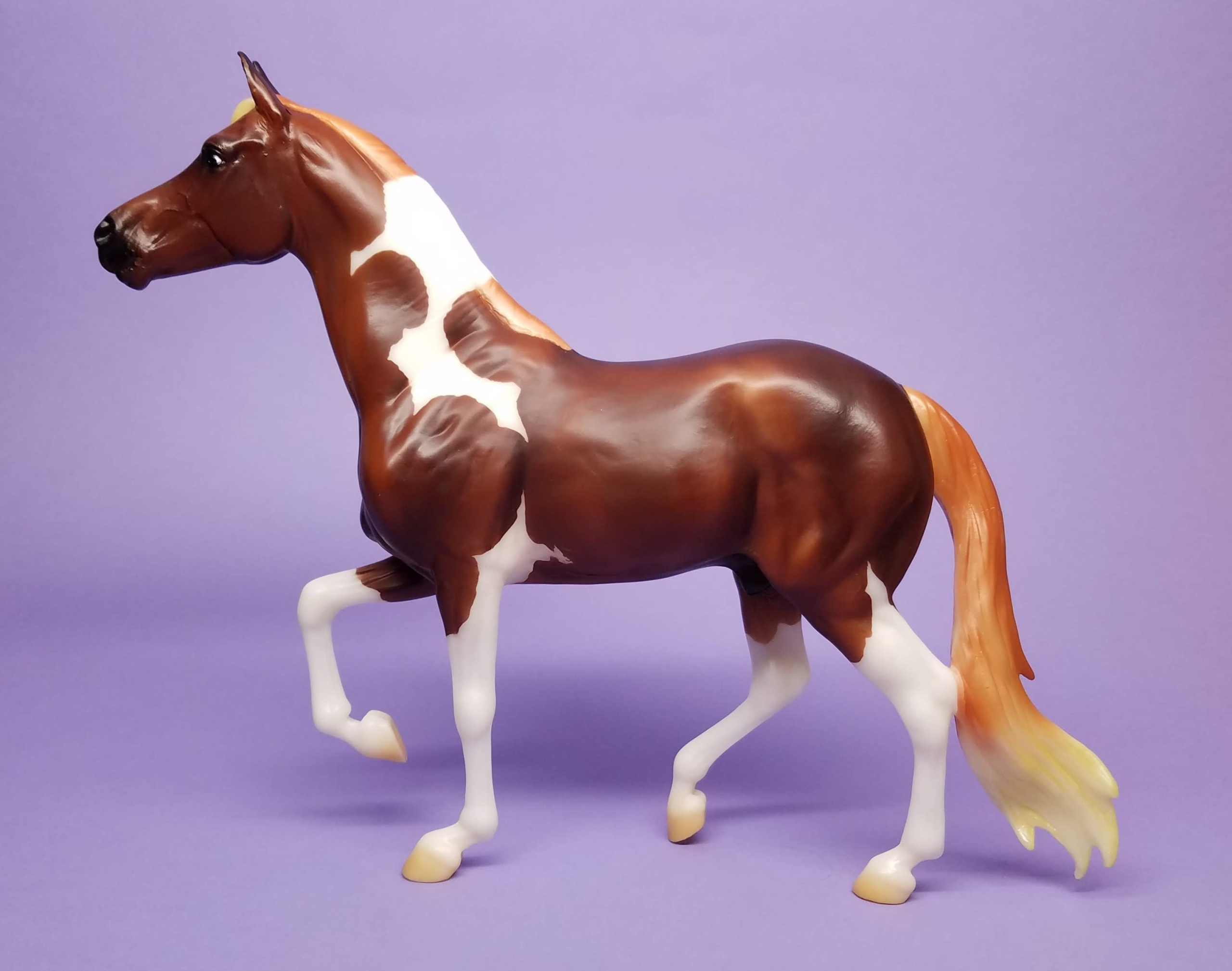 Chestnut Pinto Enzo (#1819) created on the traditional size Mangalarga Marchador mold (#738) was produced from 2019-2020. Model was stored on shelf, never played with. Comes with Original Box.